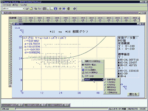 指定チャンネルのデータの相関グラフを表示します。